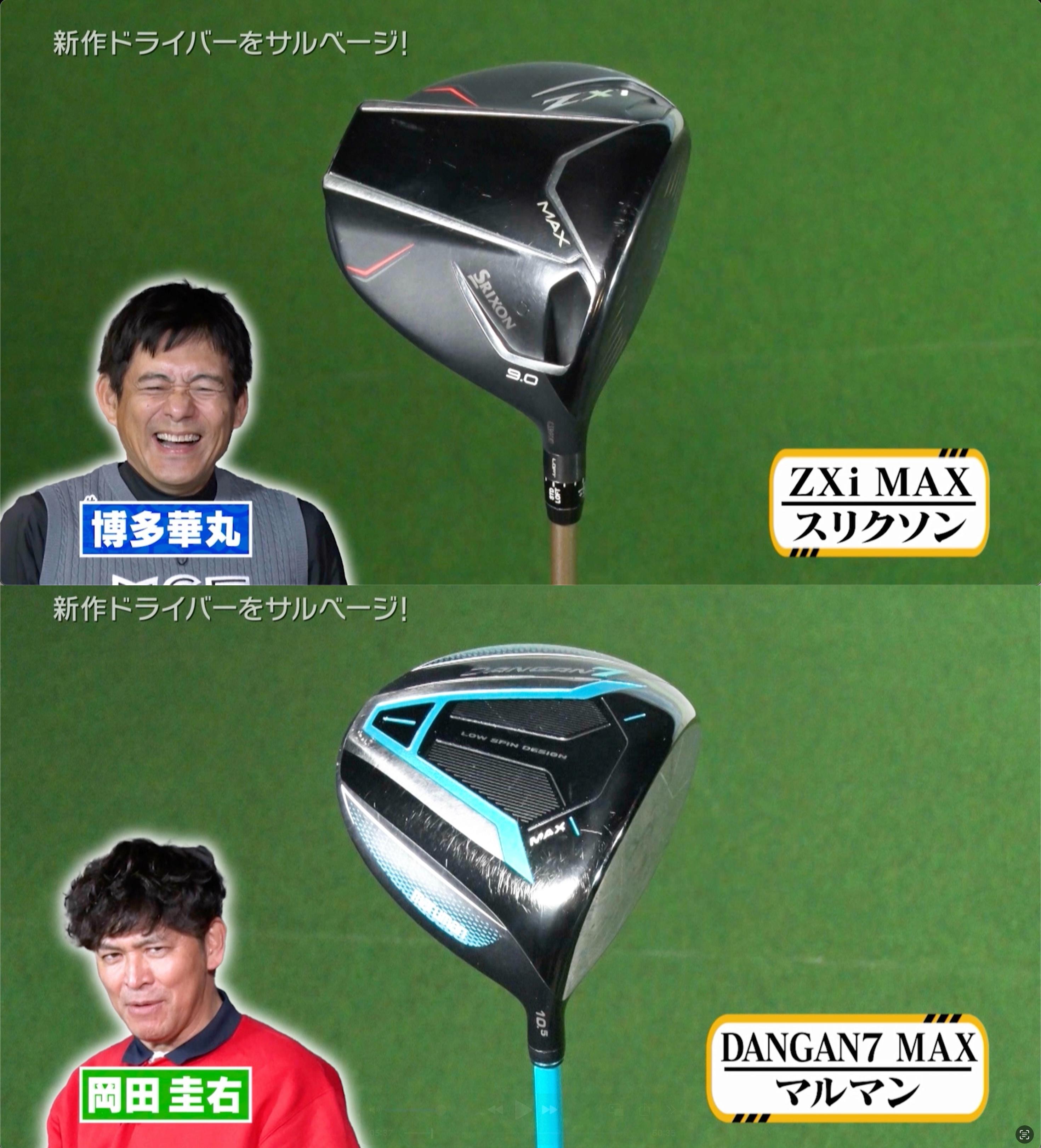 華丸さんのドライバーは、昨年番組で気に入り購入したスリクソン「ZXi MAX」+「SPEEDER NX GOLD 50s」です。華丸さん曰く「過去イチのセッティング」とのこと。さっそく打ってみると、芯は外したものの飛距離はまずまず。ですが、ベスト更新にはも少し頑張りたいところですね。
