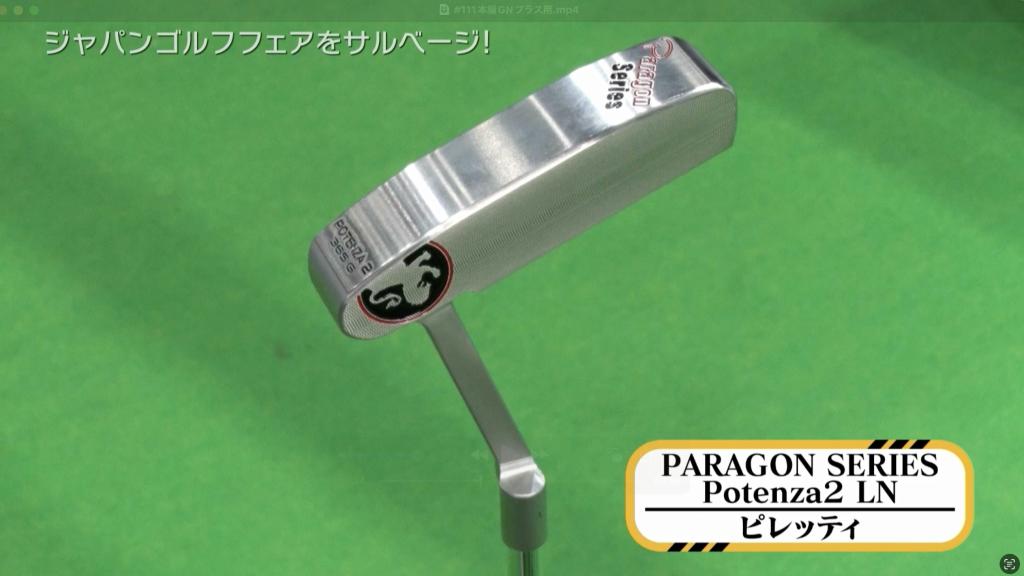 続いては「Piretti」パターです。新しく登場した「パラゴンシリーズ」を紹介してもらいました。最大の特徴は、最高級の303ステンレスをブロック状態からパターヘッドの形になるまで削り出していること、とのことです。試してみた華丸さんもたいそう気に入った様子で、その場で買いそうになっていましたよ。