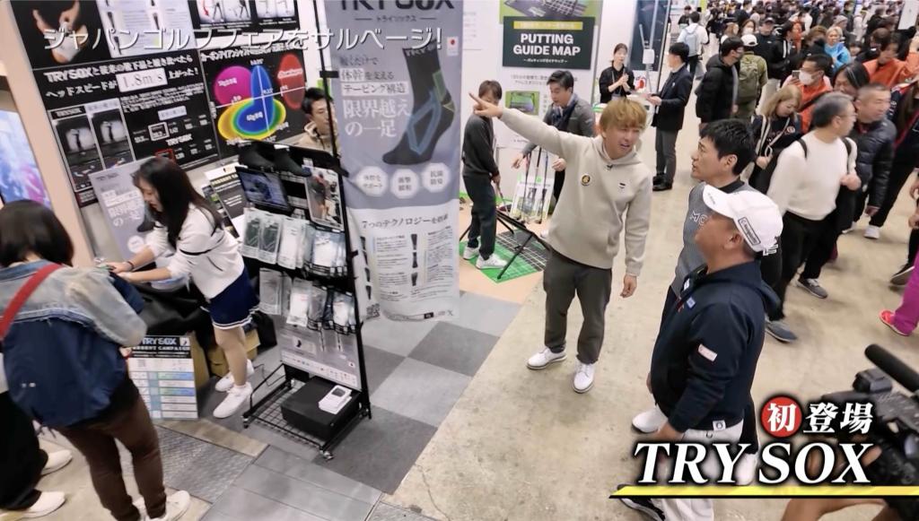 続いては、『TRY SOX』です。3本指のソックスでテーピング機能もあり、ヘッドスピードが1.8m/s上がったという実例もあるとのことです。実は、華丸さんはすでに使っているらしいです。