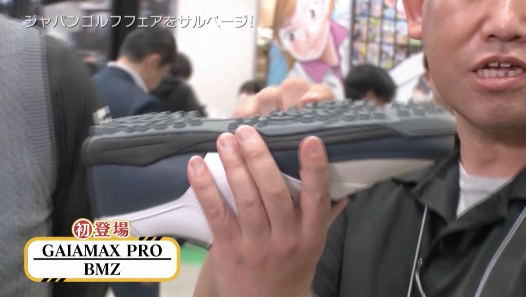 まだまだ続きますよ。お次はシューズメーカーの「BMZ」です。なんでも世界初のゴルフシューズがあるそうです。母指球のところが厚くなっていて自然と指が曲がるような設計になっていて、地面を掴めるゴルフシューズとのことです。